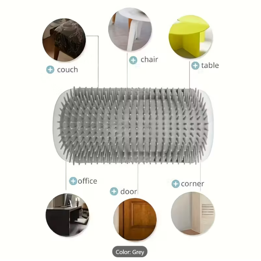 فرشاة تنظيف القطط ذاتية التنظيف، مصممة لتُركّب بسهولة على أي عمود أو زاوية جدار أو حافة أثاث. تسمح لقطتك بالخدش والتنظيف والتدليك بنفسها دون مساعدة. تأتي مع براغي لتثبيتها بإحكام وشريط لاصق مزدوج الجوانب لسهولة التركيب دون الحاجة إلى حفر.