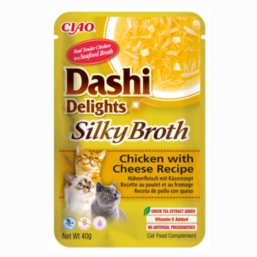 - رقائق دجاج مقطعة إلى قطع صغيرة في هلام مرق الدجاج اللذيذ