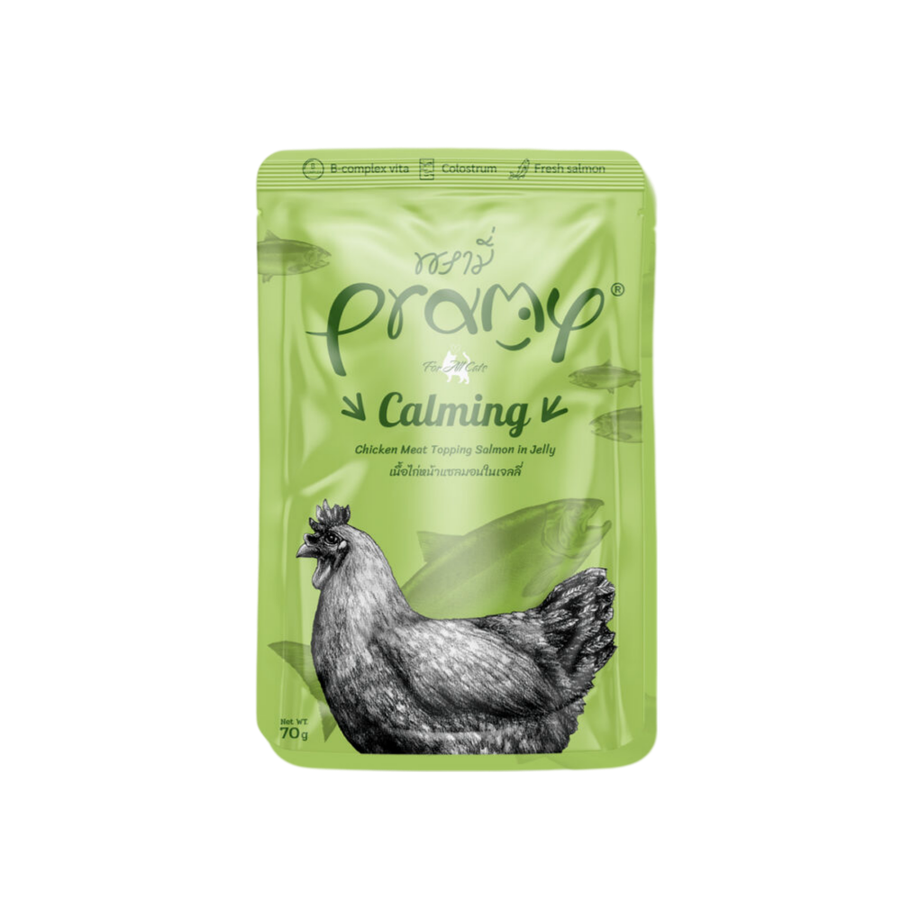وجبة دجاج وسلمون مهدئة للقطط من برامي، 70 جرام