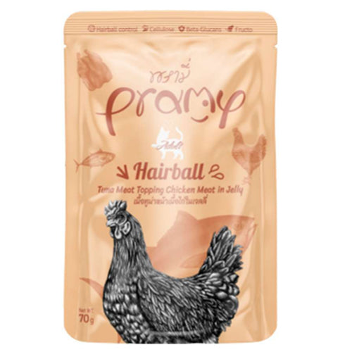 طعام القطط من برامي كات على شكل كرات شعر من التونة والدجاج في الجيلي 70 جرام