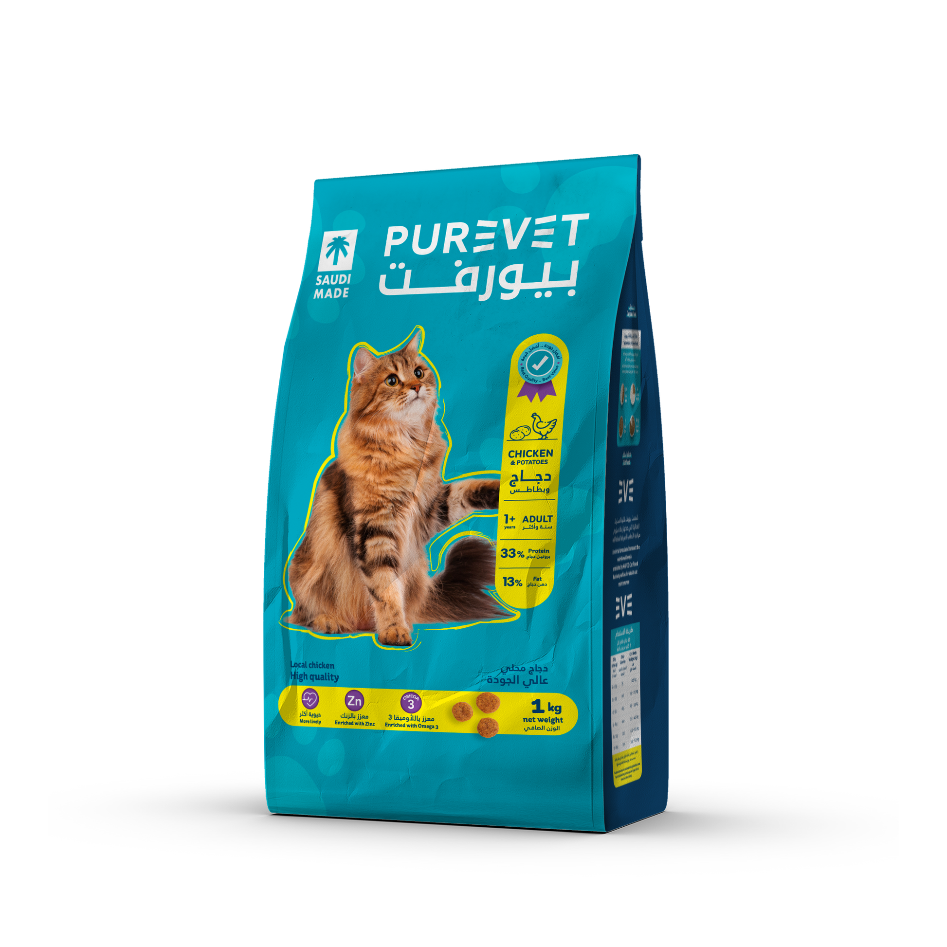يعتبر مكون البطاطس مصدرًا طبيعيًا للكربوهيدرات سهلة الهضم، مما يدعم الجهاز الهضمي ويحافظ على وزن صحي للقطط البالغة.