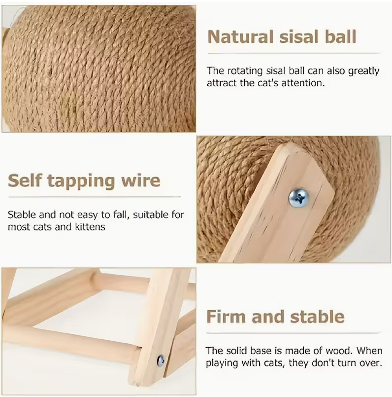 Interactive rotating sisal ball on a wooden frame for your cats' play