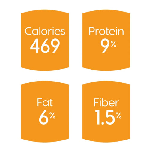محتوى السعرات الحرارية (محسوب): 1,242 كيلو كالوري/كجم 465 كيلو كالوري/علبة