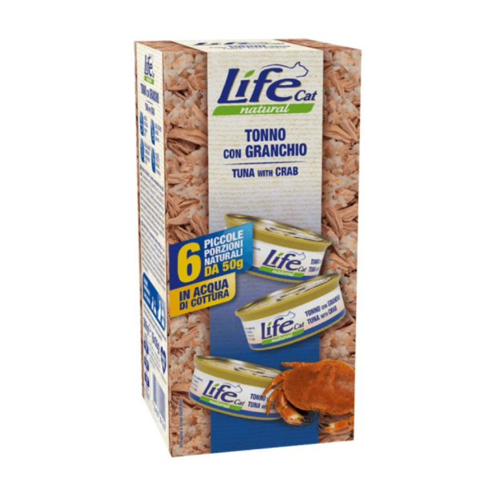 100% natural. Prime tuna slices present in large quantity and garnished with crab meat. All cooked in steam and preserved in cooking water. It is a food rich in noble proteins, precious omega 3 fatty acids and low in carbohydrates, respecting the nutritional needs of the cat. The addition of crab lends a refined taste. In the handy 50-gram format for six cans.