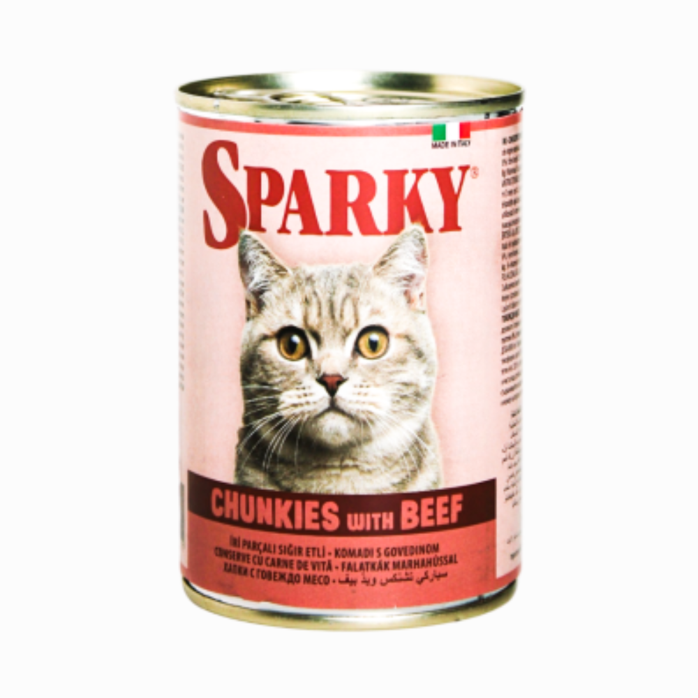 Food for adult cats containing fresh beef, designed to meet the daily nutritional needs of cats. This food includes essential proteins, vitamins, and minerals that support overall cat health. Its balanced formula aids in muscle growth and maintains the health of the immune and digestive systems. It comes in a convenient 415-gram package, making it an ideal choice for daily meals.